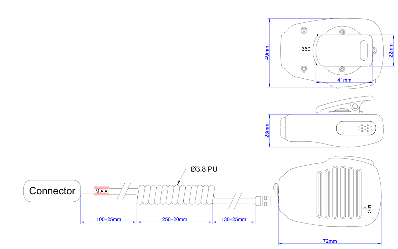 Features large, metal reinforced clip, side Push-To-Talk button, high-quality front facing microphone & 3.5 mm jack for listen only earphones. Great solution for light duty applications.