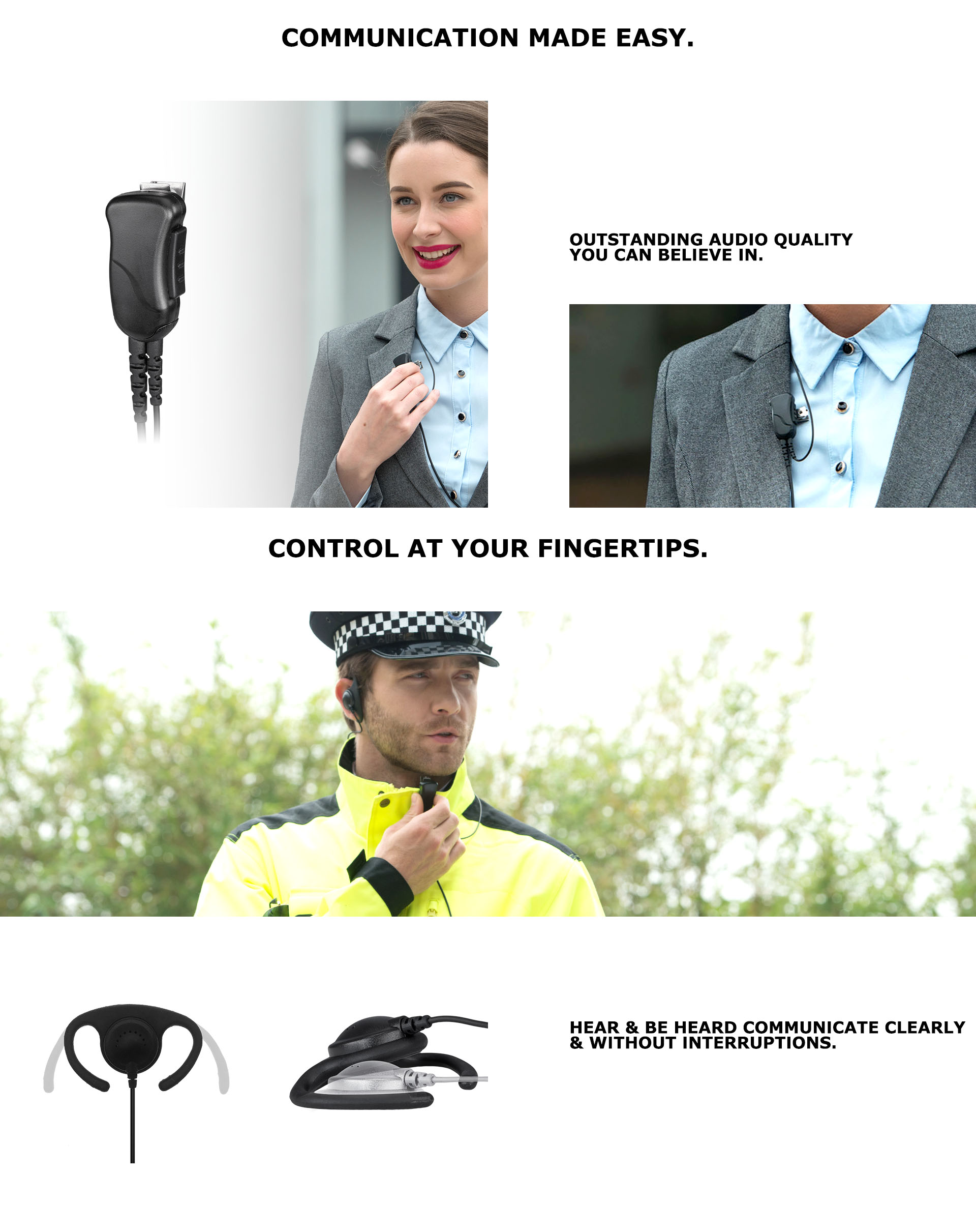 High quality adjustable earpiece designed to fit any ear provides clear and great audio. Combined with our PT28 Push-To-Talk which provides build-in microphones, Duel Switch Push-To-Talk button makes this combination the perfect solution for the service industry.