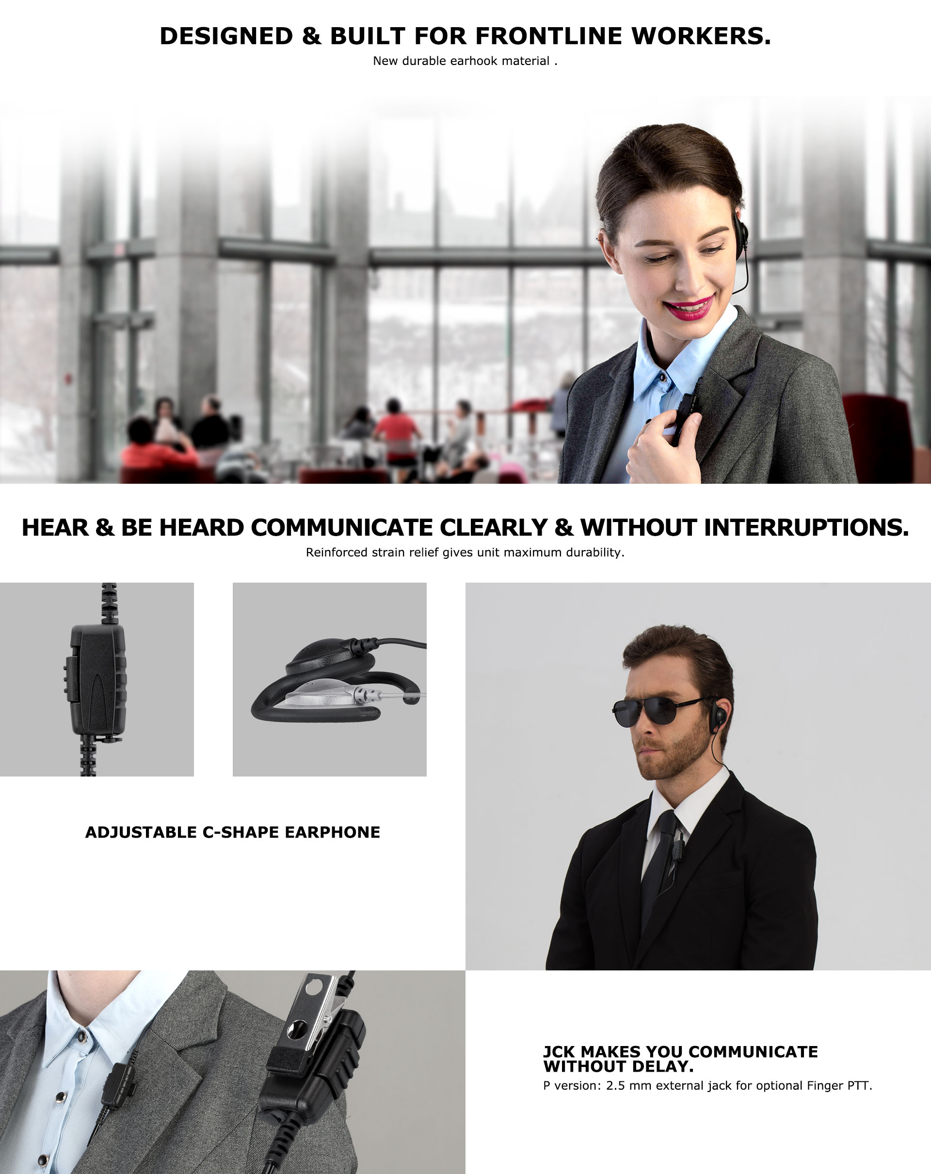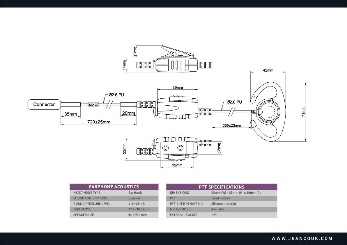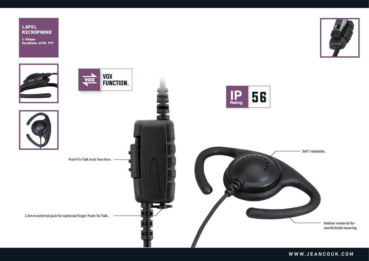 Combine with IP54 rated PT18P Push-To-Talk which features build in microphone, 360 degrees revolving metal clip & 2.5mm jack for optional finger Push-To-Talk.