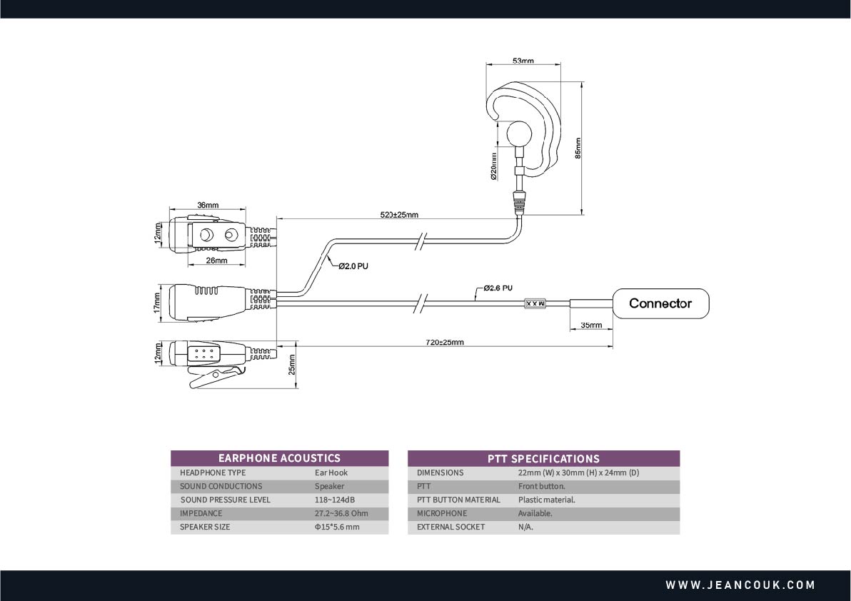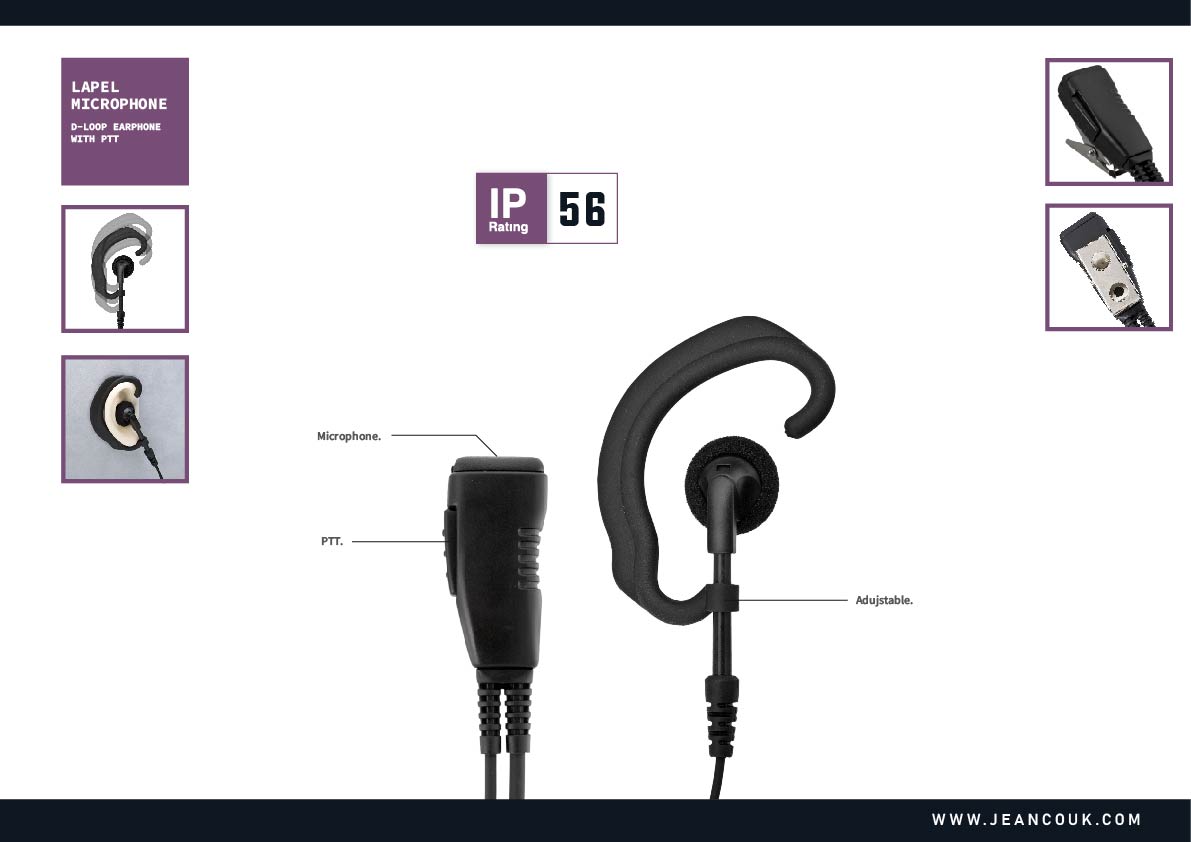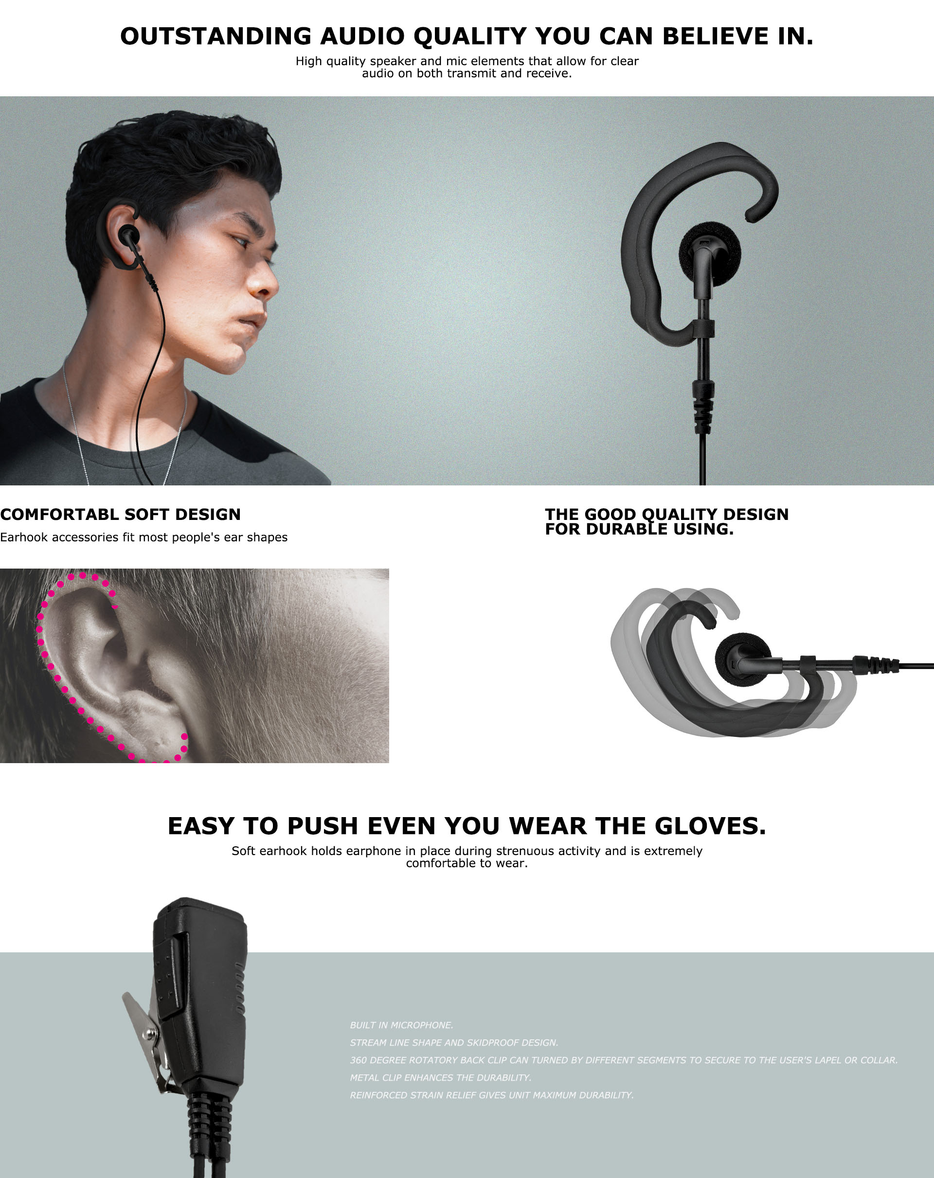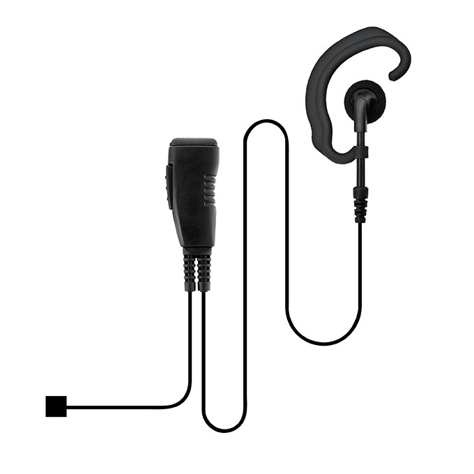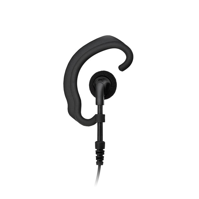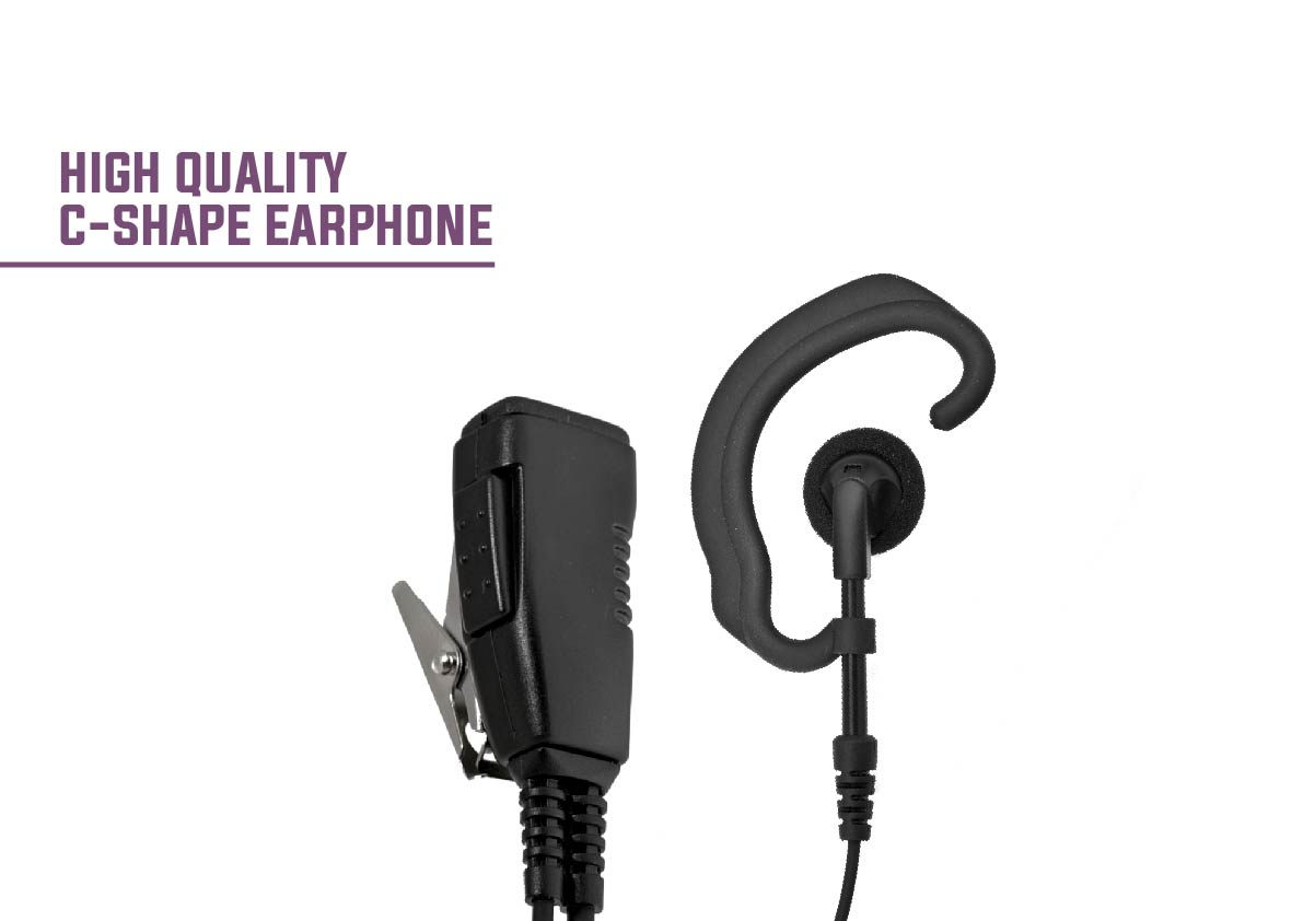 Small and comfortable C shape ear hook for long hours to use together with a streamlined shape Push-To-Talk.