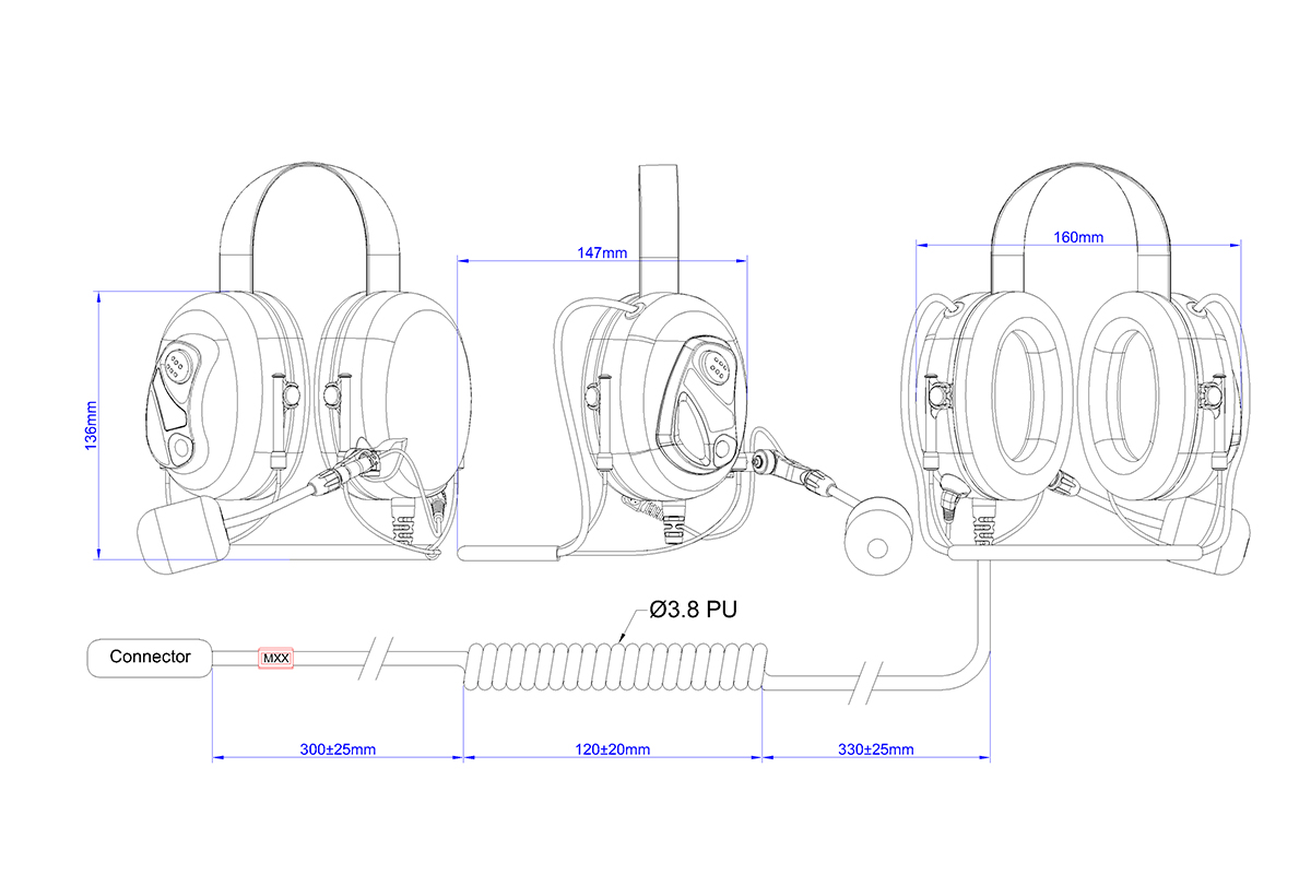 2. Changeable and easy to install boom microphone with the two-pin connector.