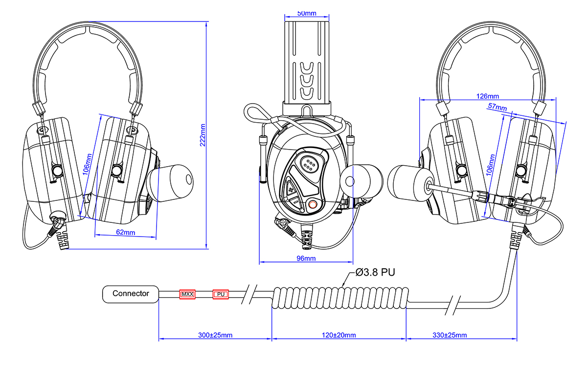 4. Big control panel with Push-to-talk button, volume control & programmable function button.