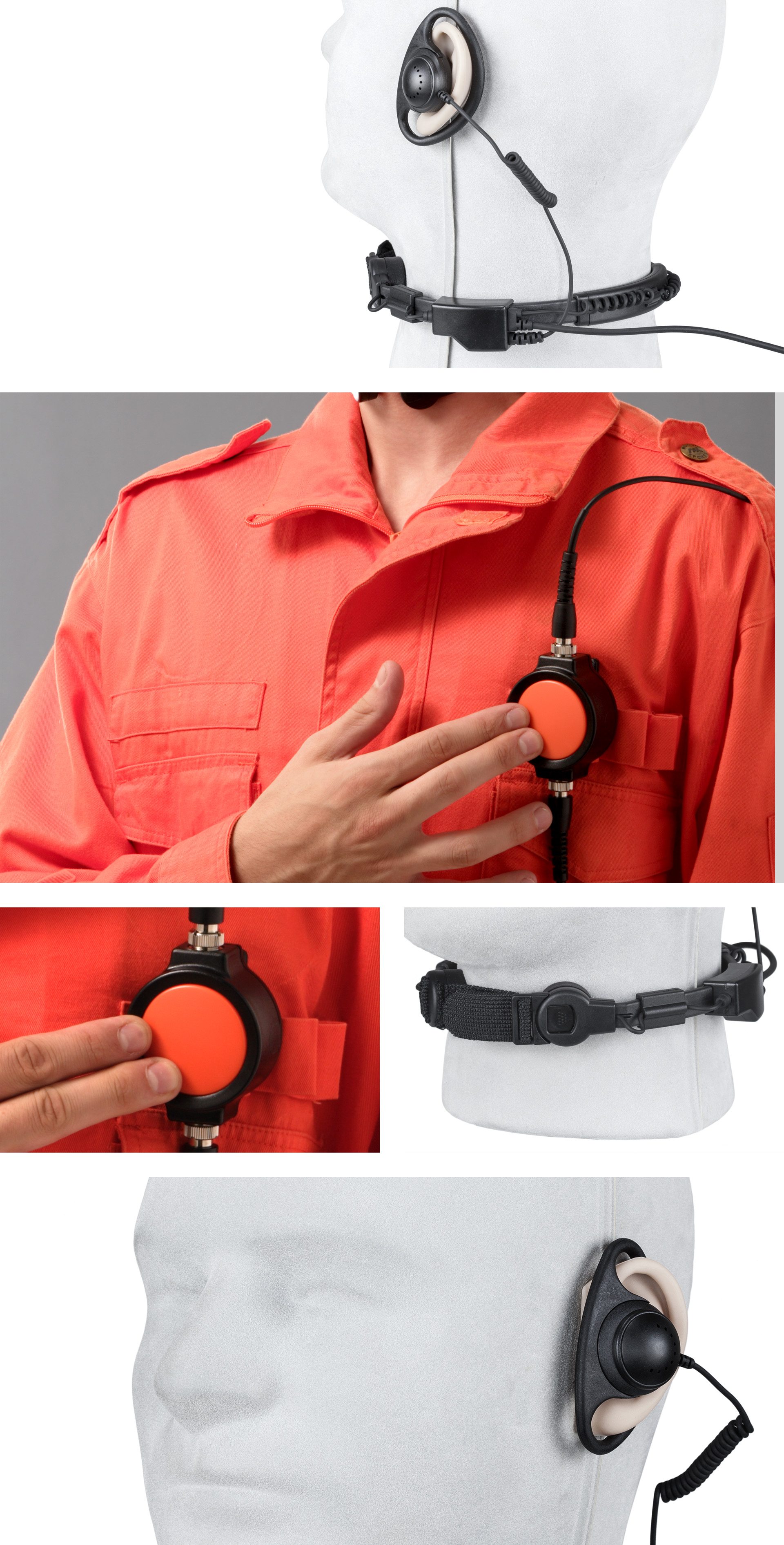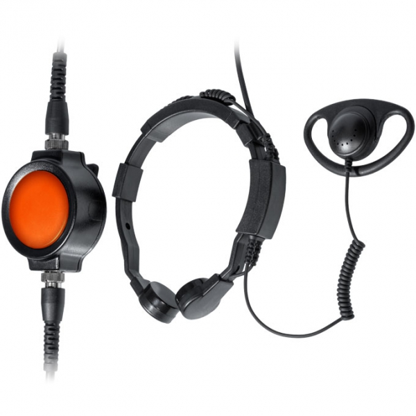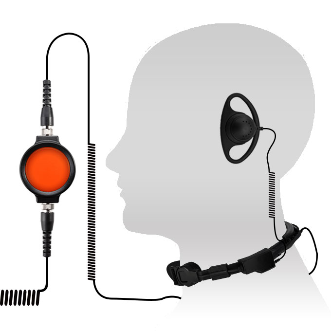 JCK EM05 Tactical heavy-duty throat microphone with attached JCK E20 D-Loop earphone for clear & high-quality audio.