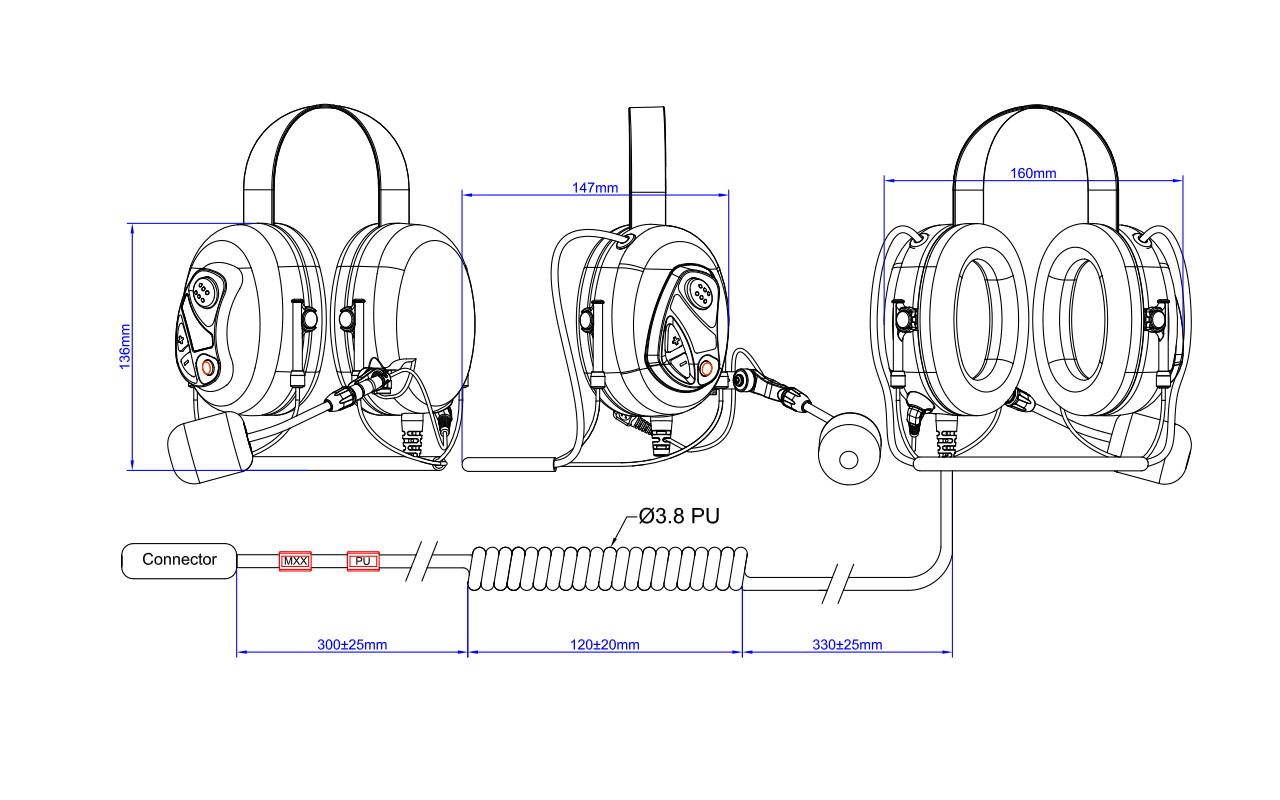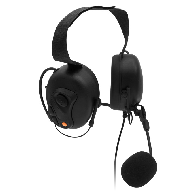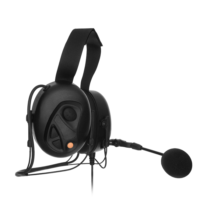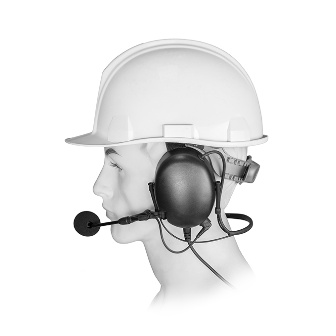 HS34 behind the head earmuff with boom microphone features a multiple function control panel which includes Push-To-Talk button, Volume control & Programmable button. It also has noise cancellation to reduce the loud sound for protecting user’s hearing.