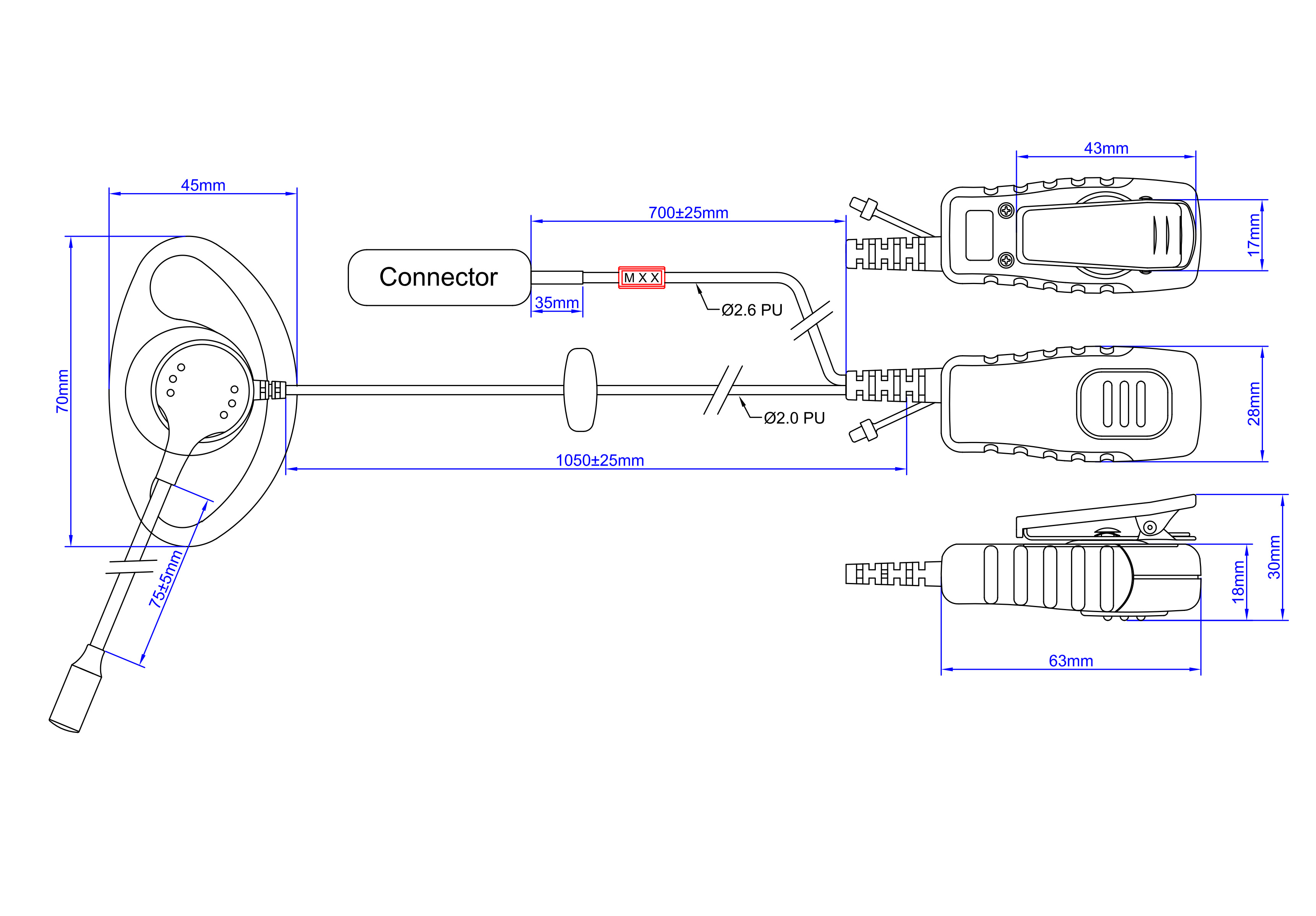 High-quality D-shape ear boom microphone for excellent transmitted audio & communication. The microphone tube can be bend at one’s own choice which allow for the ideal fit & maximum comfort. Combine JCK EM20 Ear Boom Microphone with JCK PT13 Push-To-Talk which features large rubber button, 2.5mm jack for an additional finger push-to-talk.