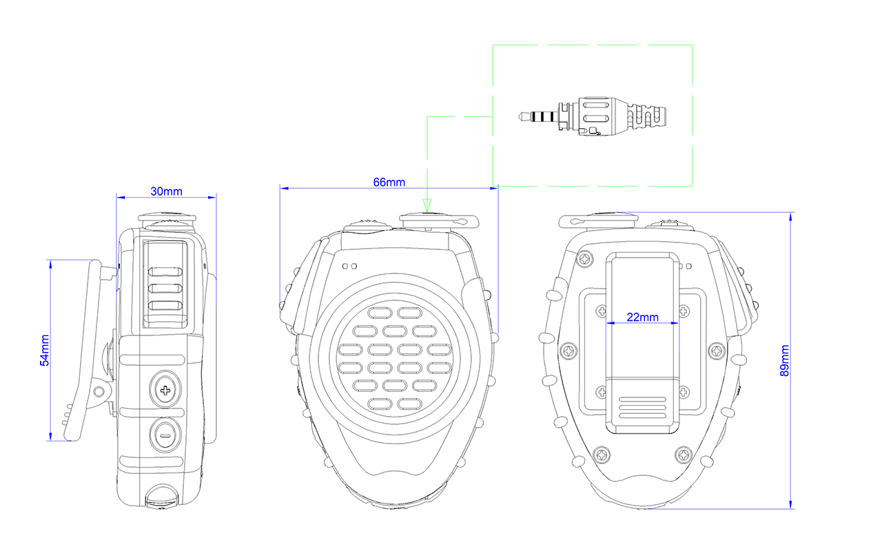 This wireless remote speaker microphone keeps you connected over long distances you never thought possible. This dual paring wireless remote speaker microphone features front tactical Push-To-Talk & side Push-To-Talk button. With the 3.5 mm jack (D3D) on top allows the user to connect additional earphones or surveillance kits. The speaker microphone is rubber sealed for water resistant in all weather environment. Last but not least the wireless speaker microphone is equipped with volume control, micro USB to charge the internal battery for long lasting use.